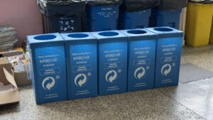 plakate i raspored sati prigodnog naziva „Reciklaža nije gnjavaža“ koji će ih podsjećati u koju kantu se odlaže papir, u koju plastika, u koju staklo te gdje ide otpad koji se ne reciklira, a naš hodnik bogatiji je za par plavih reciklažnih kutija za papir.