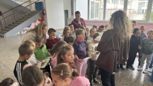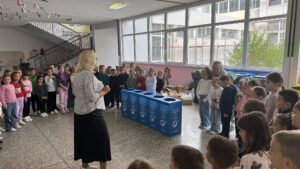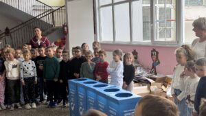 učenicima prvih razreda, jer edukacija počinje od malih nogu. Upoznali su ih s načinima pravilnog odlaganja ambalažnog otpada prema boji. Našim najmlađim učenicima podijelili su