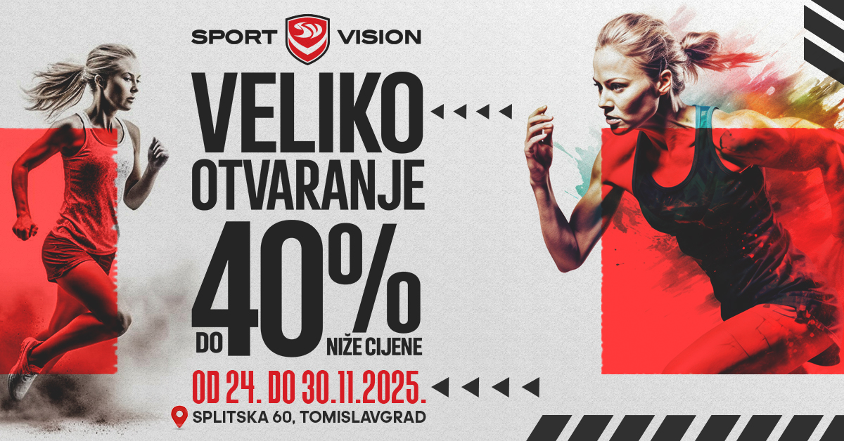 Povodom otvaranja Sport Vision trgovine u PC Prodexu u Tomislavgradu, za sve kupce pripremili smo do 40% popusta, samo od 24. do 30. 11. 2025.