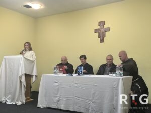 Fra Gabrijel Mioč, ravnatelj Naših ognjišta, koji je istaknuo važnost kulturnog i društvenog djelovanja ove institucije, kao i doprinos same knjige u očuvanju lokalnog jezika, identiteta i humoristične tradicije.